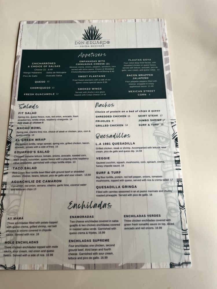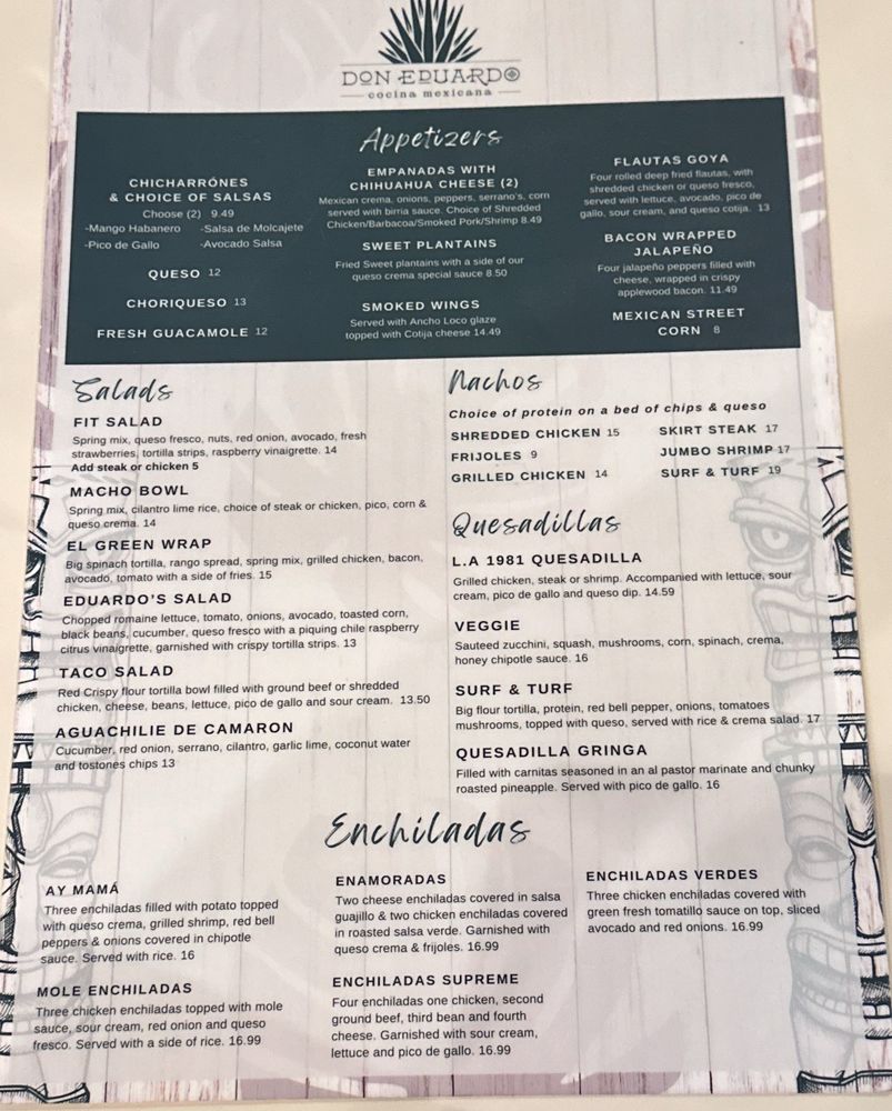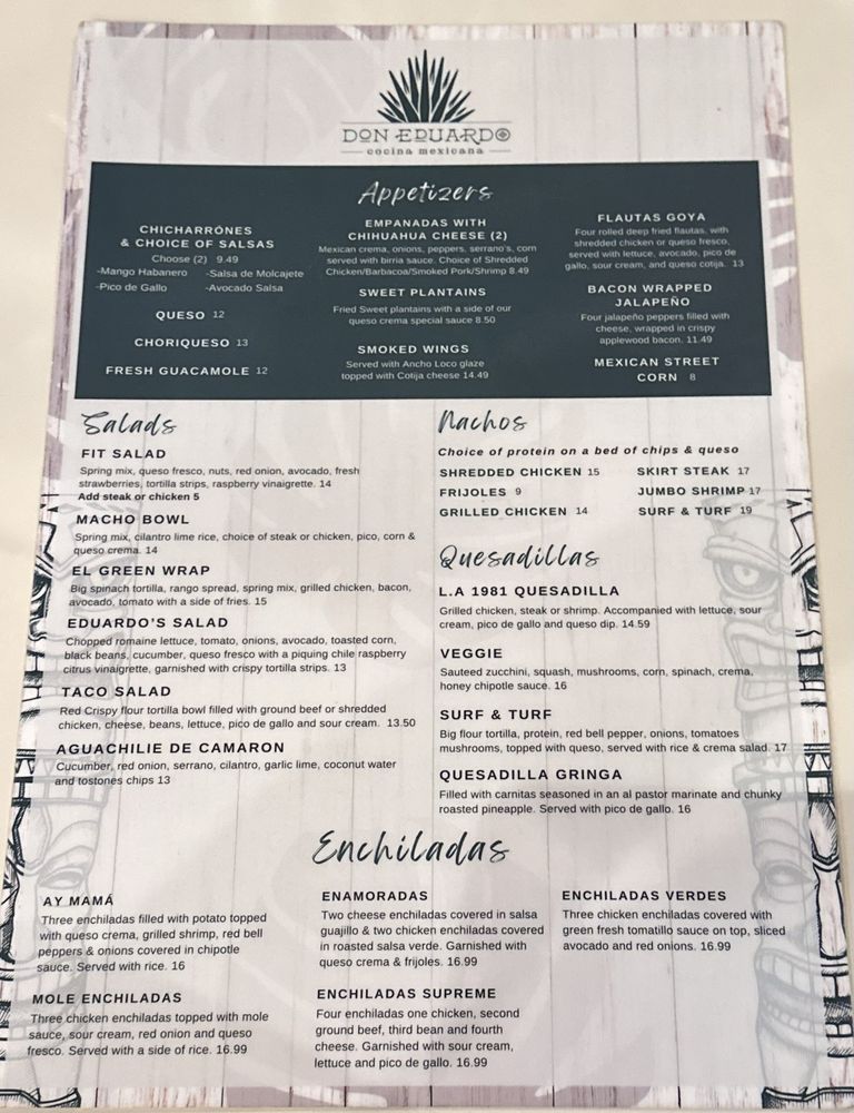 Don Eduardo Cocina Mexicana Menu (Update 2025)